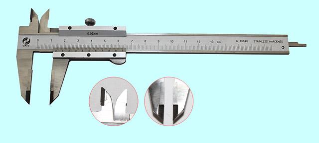 Производитель завод SHAN Штангенциркуль имеет две шкалы и микрометрическое устройство для тонкой регулировки рамки. Основная шкала нанесена на штанге с делениями через 1 мм, вторая шкала - на нониусе, который закреплен на рамке. Фиксация рамки производиться при помощи стопорного винта. Плавное перемещение рамки обеспечивается пружиной, расположенной внутри рамки. Наружные размеры измеряются при помощи обеих пар губок. Верхние губки используются для разметочных работ. Для измерения внутренних размеров используются нижние нижние губки. При таких замерах измеряемый размер равен величине отсчета по шкале штангенциркуля плюс величина губок. Размер сдвоенных губок маркируется на одной из губок штангенциркуля. Отсчет размеров производиться методом непосредственной оценки совпадения деления шкалы с делениями нониуса. Технический паспорт (Word)