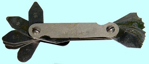 Предназначены для определения номинального шага Р метрической резьбы. Число шаблонов в наборе - 20шт. (0,4; 0,45; 0,5; 0,6; 0,7; 0,75; 0,8; 1,0; 1,25; 1,5; 1,75; 2,0; 2,5; 3,0;; 3,5; 4,0; 4,5; 5,0; 5,5; 6,0)