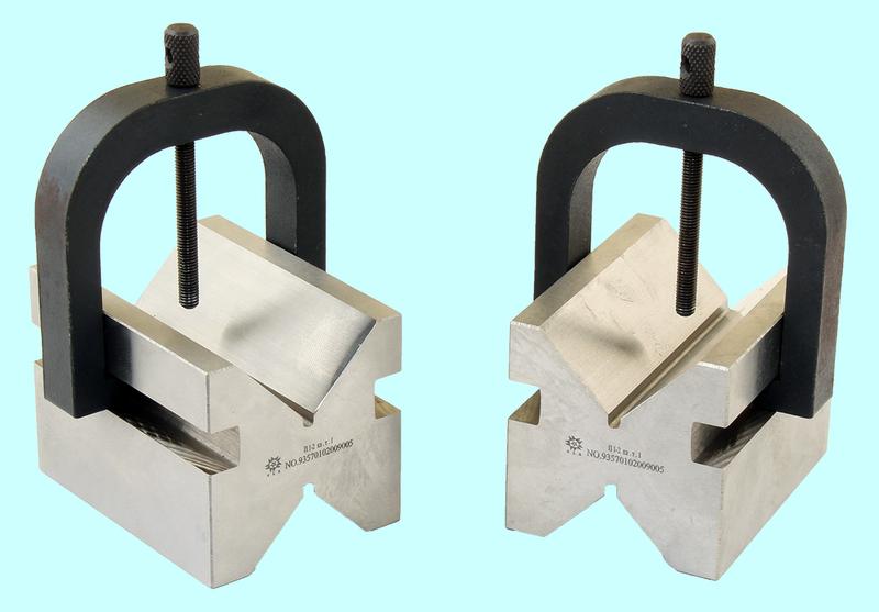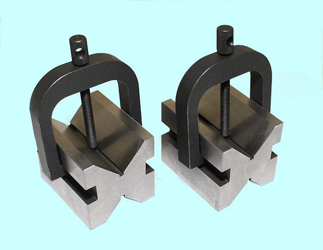 Изготовлены по Китайскому стандарту JB/T8047-95 с двумя призматическими выемками и скобой для фиксации заготовки. Предельные отклонения от параллельности и перпендикулярности + - 0,01мм. Фиксация детали осуществляется при помощи скобы с центральным винтом.