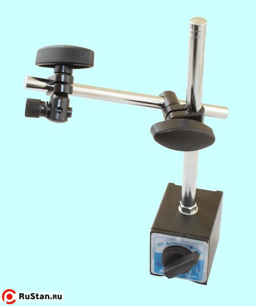 Усилие отрыва 80 кг. Штатив предназначен для крепления индикаторов часового типа ИЧ как с ушком, так и без ушка при контрольных измерениях биений и линейных отклонений от заданных норм. Размер магнитной базы: 60х49х54мм. Диаметр отверстия под шток индикатора - 8мм Диаметр ушка индикатора - не менее 6мм.
