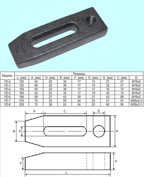 Прихват плоский 19 160х52х25мм М16 кованый (YD-5)