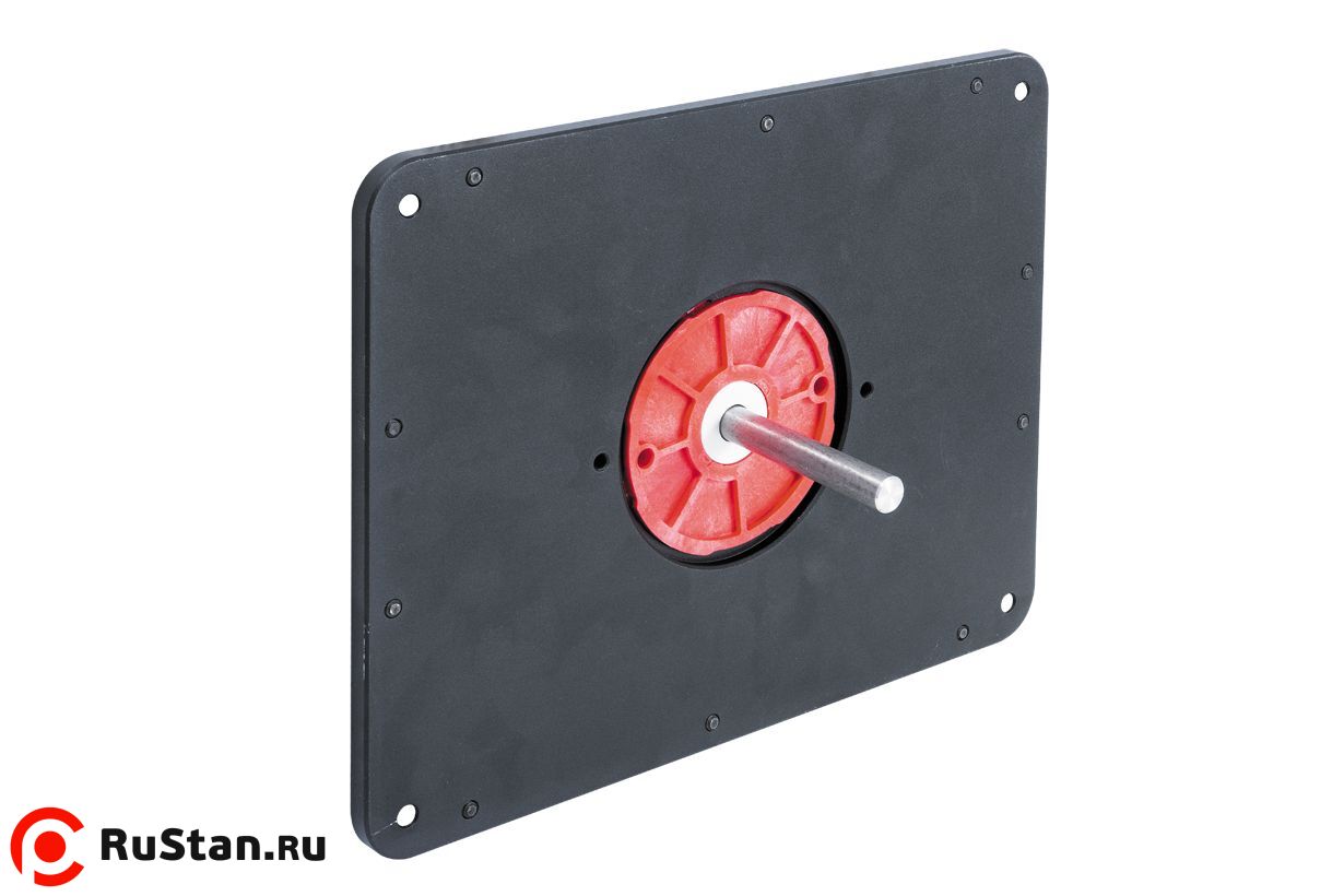 Прочная и жесткая дюралевая пластина 298х235х10 мм для крепления фрезера и установки в отверстие универсального чугунного фрезерного стола Jet 98600W или другого подходящего. Может использоваться для фиксации любых моделей ручных фрезеров – крепежные отверстия сверлят с обратной стороны «по месту». Для облегчения монтажа пластина оборудована юстировочными винтами по периметру, предназначенными для выравнивания плоскости со столом станка. С точки зрения удобства последующей эксплуатации оптимальны модели ручных фрезеров, оснащенные системой микролифта и блокировкой вала со стороны подошвы, например Triton TRA001.