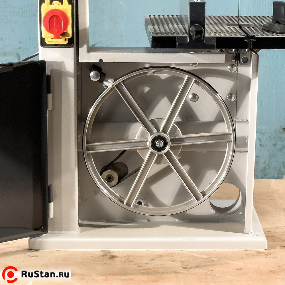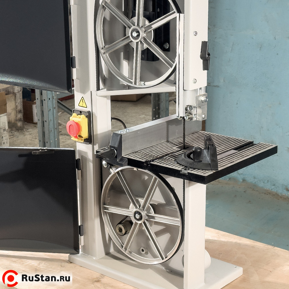 Для точной обработки большого количества одинаковых изделий в комплекте ленточной пилы имеются упор с линейкой и транспортир, с помощью которых устанавливается длина обрабатываемого изделия и угол среза на нём