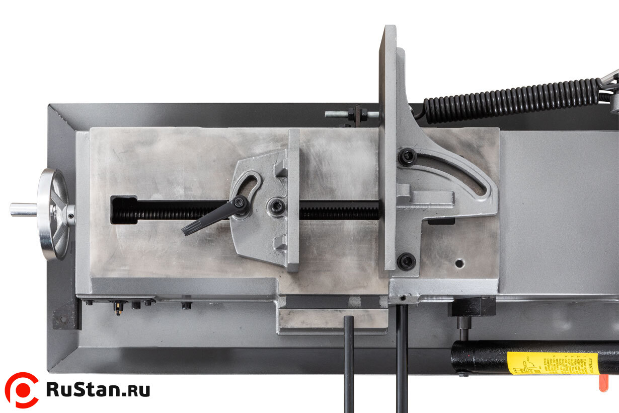 Модель оборудована кнопкой аварийной остановки двигателя, имеет тензометр, с помощью которого можно регулировать силу натяжения ленточной пилы.