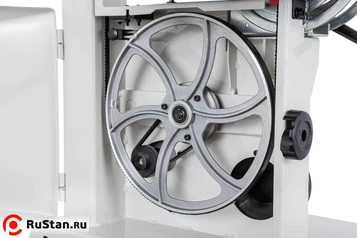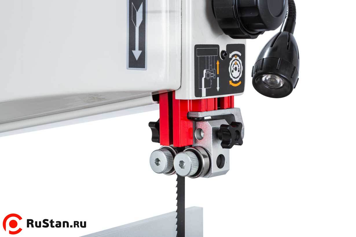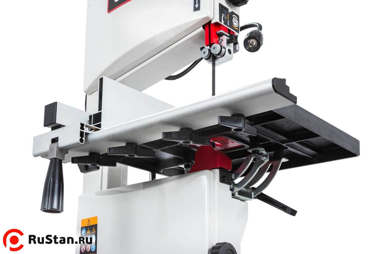 Данная модель имеет максимальное для своего класса оснащение и, кроме привычных «обязательных» функций и настроек, у нее есть и все вспомогательные. Среди них рычаг для быстрого ослабления и натяжения полотна, позволяющий одним движением переводить станок из состояния хранения в рабочее. Светодиодная подсветка рабочей области с гибким штативом. Патрубок аспирации со ступенчатым подключением шланга диаметром 50, 75 или 100 мм.