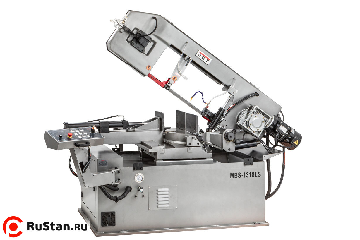 Модель MBS-1318LS имеет регулируемую направляющую для регулировки прохода ленточного полотна в зависимости от формы заготовки и ее диаметра. Направляющие блоки осуществляют позиционирование полотна непосредственно под прямым углом к поверхности обрабатываемой заготовки. Максимальная стойкость ленточного полотна обеспечивается подачей СОЖ в зону резания.