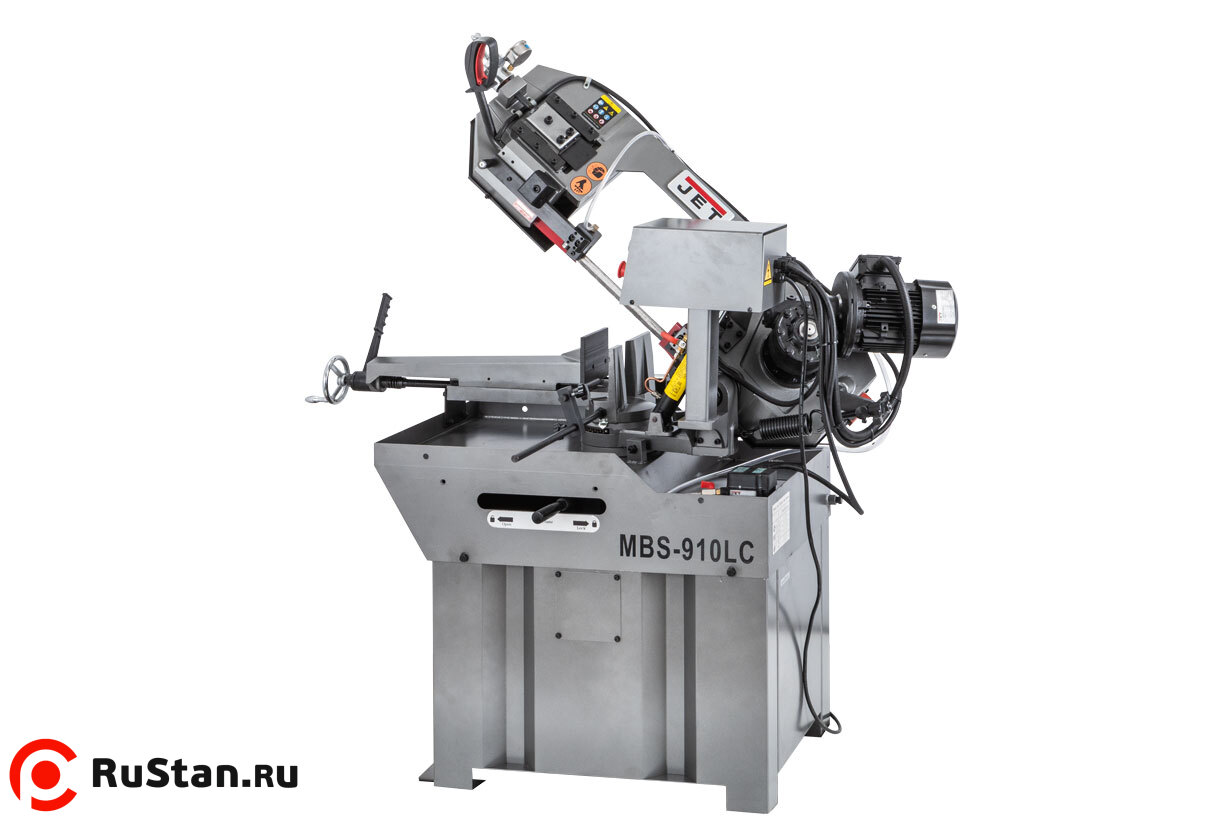 Ленточнопильный станок MBS-910LC представляет собой традиционную модель станков европейского типа, предназначенных для промышленного использования. Станок рассчитан на пиление круглых металлических заготовок под прямым углом максимально допустимого диаметра 227 мм. Особенности конструкции заключаются в возможностях поворота пильной рамы для обработки заготовок под разными углами. Угол поворота пильной рамы вправо составляет 60°. Максимальный диаметр заготовки для пиления под углом 45° составляет 150мм, при установке консоли под углом 60° – 90 мм. Станок MBS-910LC оборудован системой гидроразгрузки, с помощью которой осуществляется опускание консоли. Поднятие консоли обеспечивается оператором с помощью работы пружины–компенсатора. Наличие гидроцилиндра позволяет регулировать скорость подачи рамы в зону резания.