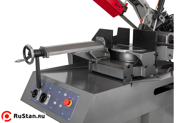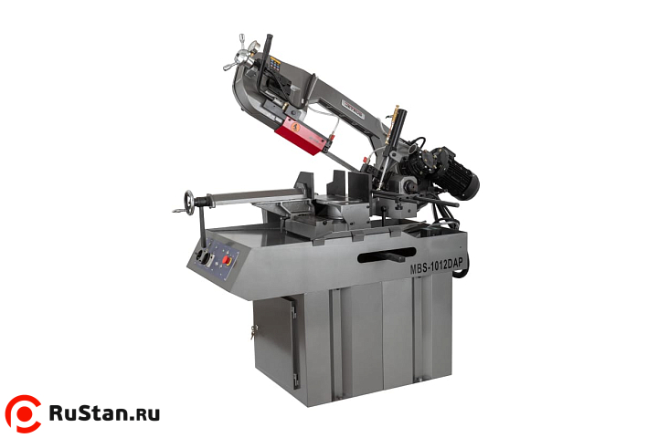 Ленточнопильный станок MBS-1012DAP представляет собой традиционную модель промышленного оборудования, применяемого в заготовительном производстве. Модель имеет конструкцию европейского типа. Тяжелая литая консоль и большие тиски с ручным зажимом, позволяют выполнять пиление металлических заготовок большого диаметра. Пиление под прямым углом допускает максимальный диаметр заготовки в 250 мм. Под углом в 45° с поворотом в лево 165мм и в право 210мм. При повороте консоли на 60° в право – максимальный диаметр пиления 135мм.