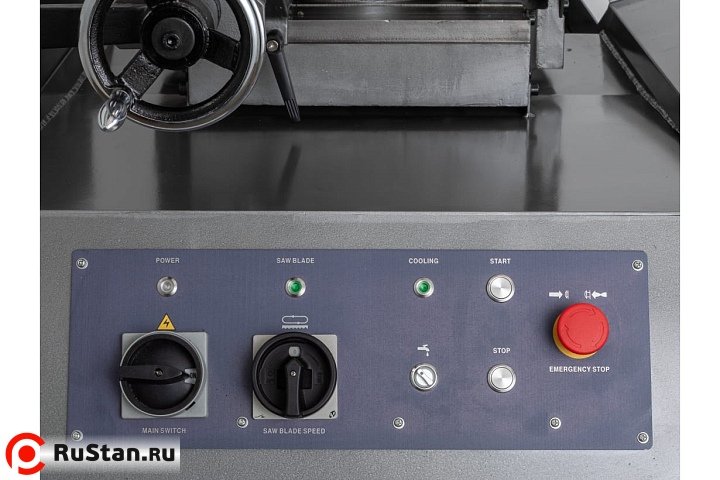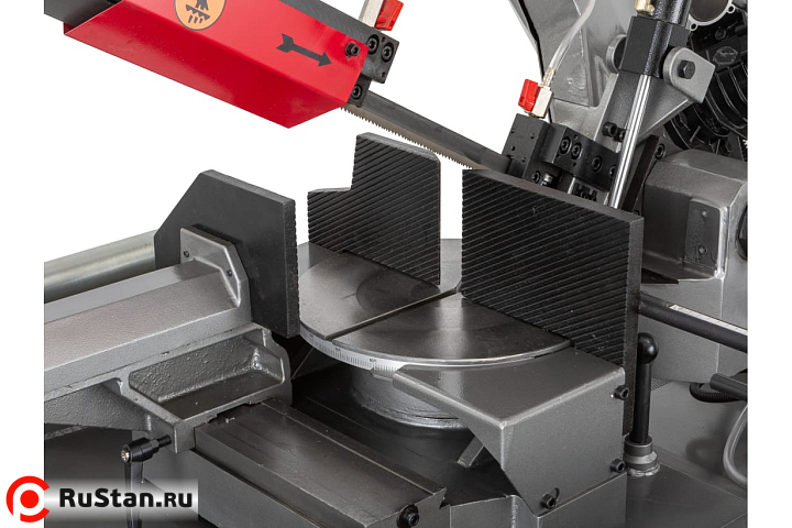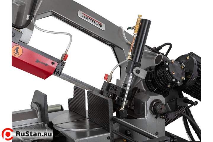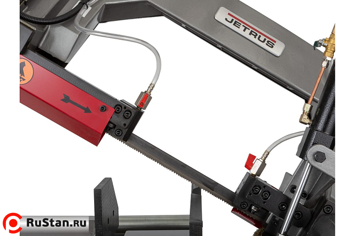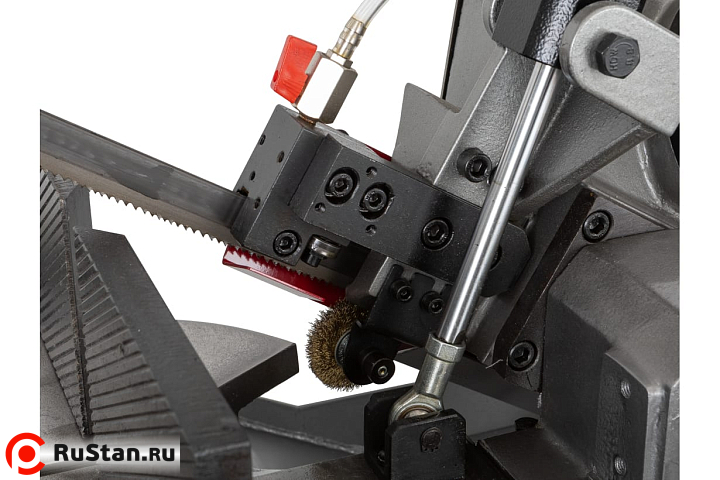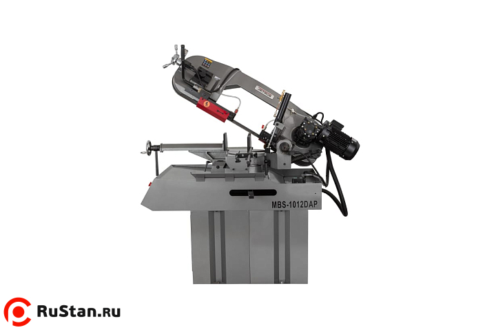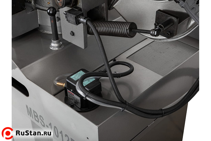 Модель MBS-1012DAP имеет регулируемую направляющую для регулировки прохода ленточного полотна в зависимости от формы заготовки и ее диаметра. Направляющие блоки осуществляют позиционирование полотна непосредственно под прямым углом к поверхности обрабатываемой заготовки. Максимальная стойкость ленточного полотна обеспечивается подачей СОЖ в зону резания.