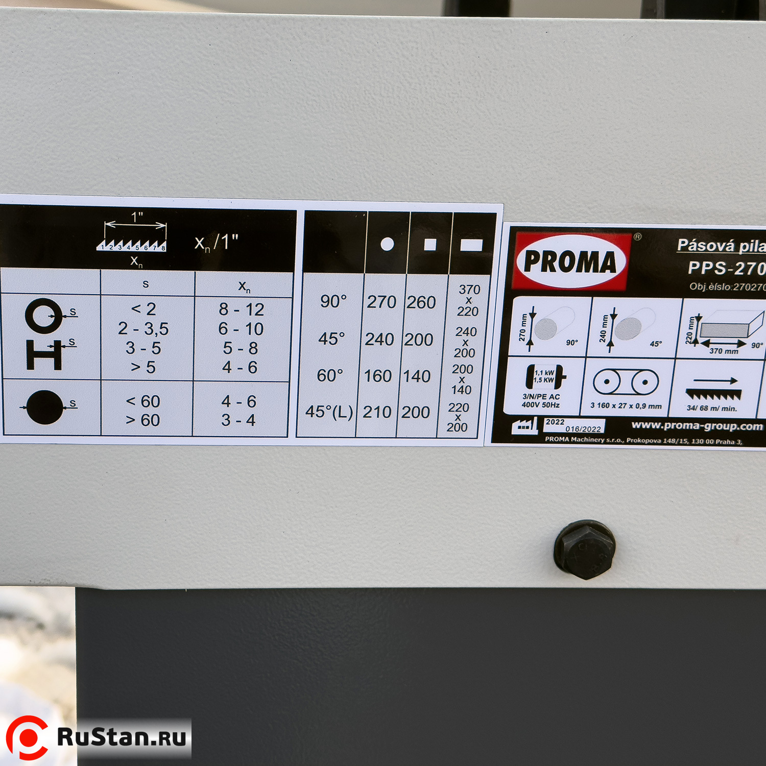 Технические характеристики ленточнопильного станка Proma PPS-270HPA