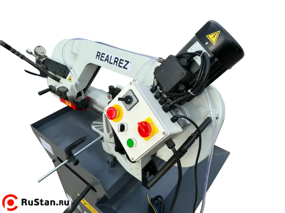 Скорость подачи во время резания осуществляется гравитационно. Оператор запускает машины, нажав на кнопку пуска и устанавливает скорость резания. После завершения цикла, машина автоматически останавливается и оператор поднимает консоль в исходное положение. Использование пилы шириной 27 мм позволяет в полной мере осуществлять резку конструкционной стали, нержавеющей стали и других материалов. Направляющие изготовлены из твердого сплава для превосходной точности и прямолинейности реза. Это оказывает огромное влияние на сохранение ленты, ее жизнеспособность, точность и качество резки. Скорость подачи регулируется на панели управления станком. По окончании резки станок автоматически выключается.
