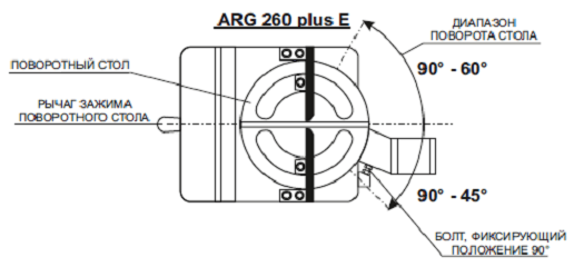 • Плавная регулировка угла реза от -45° до +60° с фиксацией на 45°, 60° и 90°.
