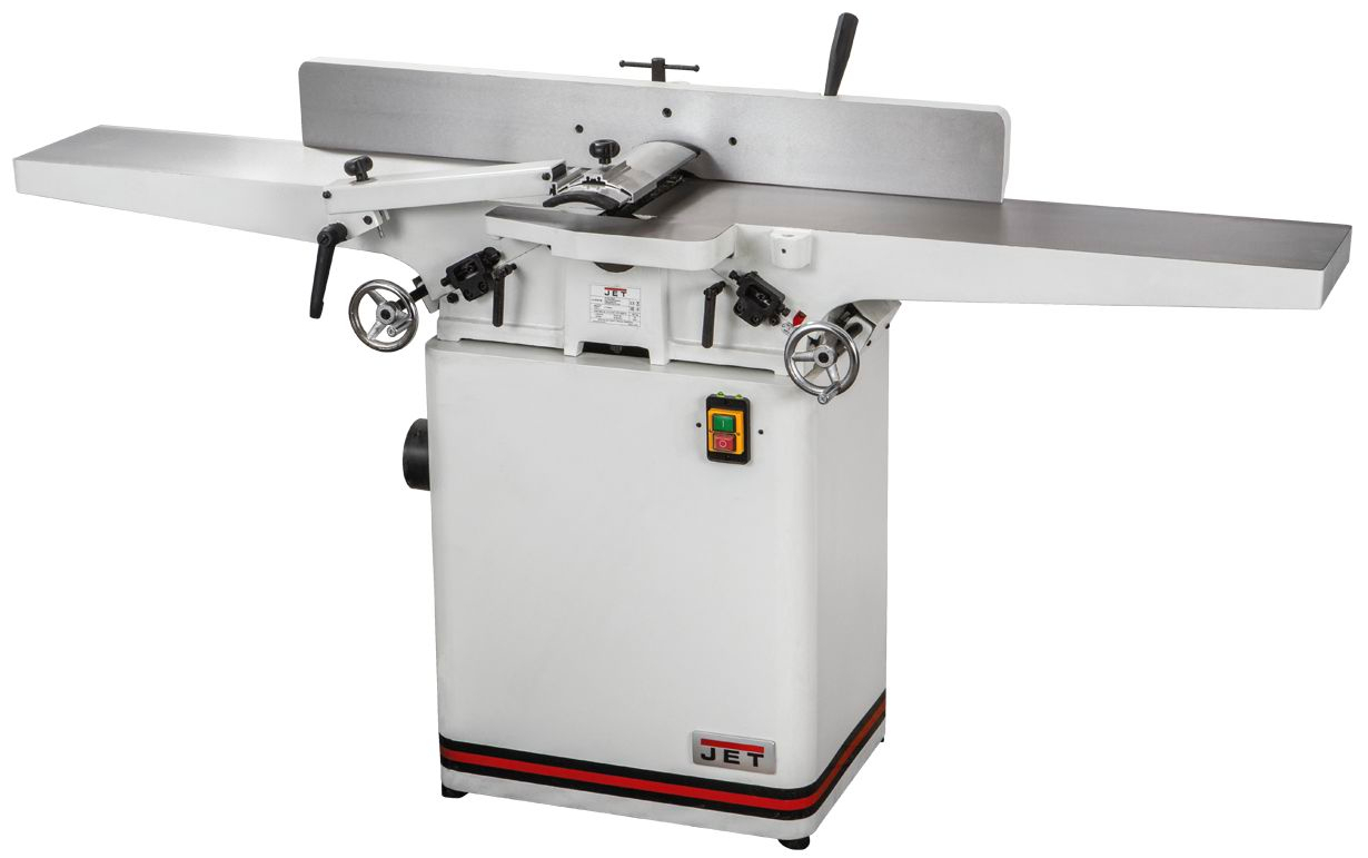 JJ-866 новый фуговальный станок Jet профессионального класса с шириной строгания 200 мм, оборудован длинными массивными чугунными столами. Может в качестве опции комплектоваться строгальным валом helical, который незаменим при работе с твердыми породами, по древесине с сучками и просто при интенсивной эксплуатации.