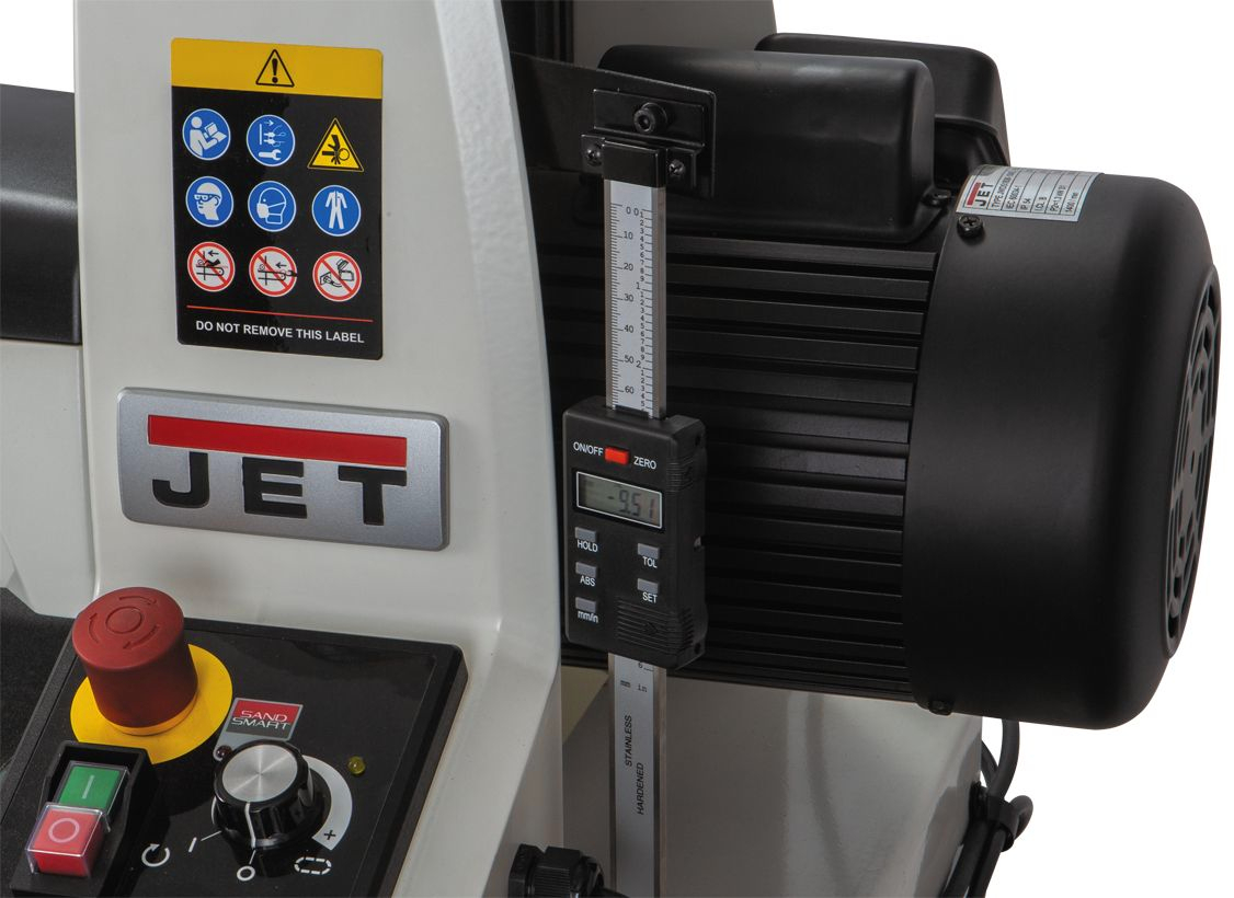 Как и все барабанные шлифователи Jet, этот оборудован системой, облегчающей замену абразивного материала. Во-первых, сам барабан выполнен легкосъемным. Во-вторых, оптимальное натяжение намотанной на него ленты задается автоматически при помощи специального пружинного механизма; он же компенсирует растяжение материала при износе.