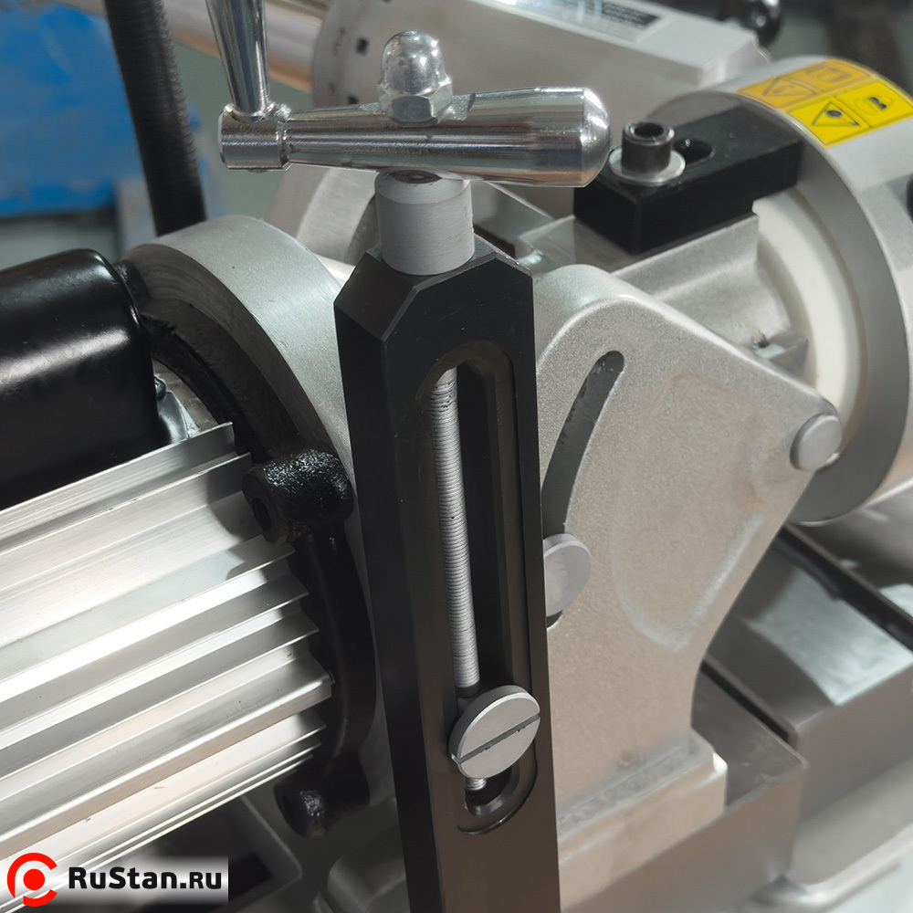 - Рукоятка регулировки наклона шлифовальной бабки
