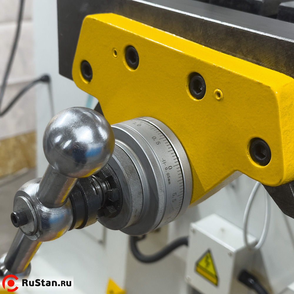 Во фрезерной головке 3 смонтирован шпиндель на шарикоподшипниках. Шпиндель оснащён конусом ISO40, в который можно вставить сверлильный патрон на оправке или инструмент с конусом ISO40. Вращательное движение шпиндель получает от электродвигателя 1 через коробку скоростей. Для установки оправки горизонтального шпинделя передняя часть фрезерной головки поворачивается на 180° и устанавливаются направляющая, оправка и серьга.