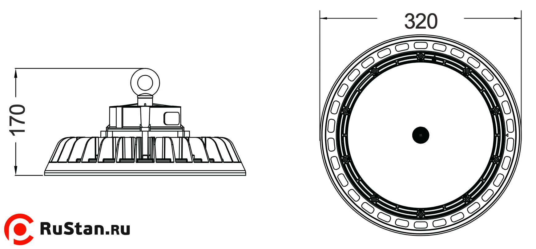 | Размеры светильника с крюком, мм | 320хх320х170 | |